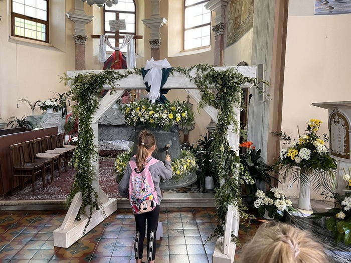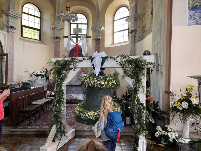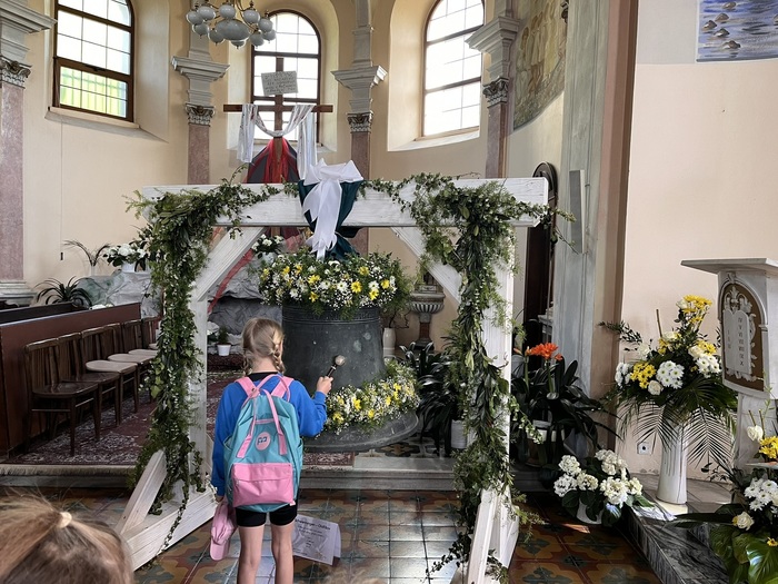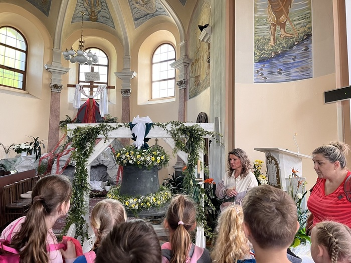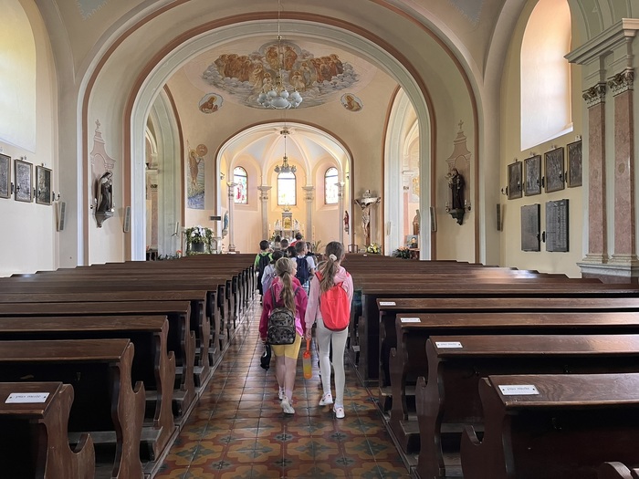 V úterý 30. 4. jsme s dětmi navštívili kostel v Oldřišově, kde je vystavený kostelní zvon. Ten byl odtud odcizený po válce a po mnoha letech se zase z Německa vrátil zpět. Na zvon jsme si mohli i zazvonit. Zpátky z Oldřišova se šlo pěšky a celý výlet jsme si moc užili.