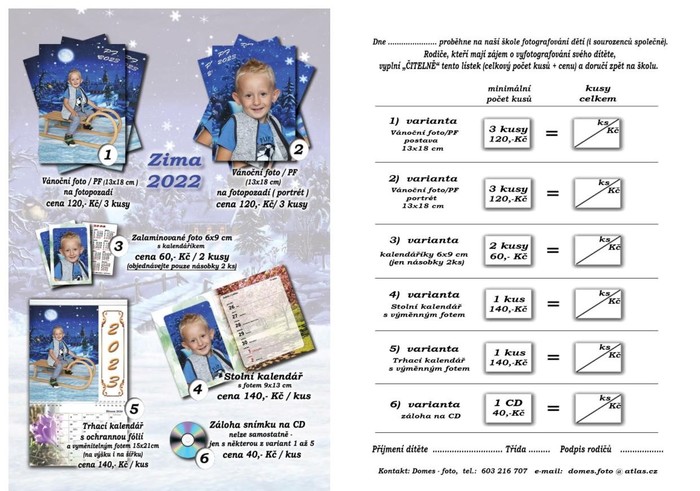 Dne 2. prosince 2022 od 17 hod. se uskuteční v Kulturním domě ve Služovicích vánoční focení pro děti (v doprovodu zákonného zástupce) ze Služovic a Vrbky a jeho okolí. Fotit bude pan Pavel Domes. Platba hotově na místě. S sebou objednávkový letáček, viz. příloha.