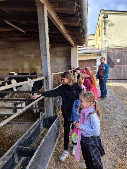 S širokým úsměvem nás v pátek 5. 4. 2024 přivítal ředitel CETY pan Veselský. Provedl nás areálem, vysvětlil chod CETY a ukázal všechna zvířátka, která zde žijí. Měli jsme to štěstí vidět jednodenní jehňátko s jeho maminkou. Pohladili jsme si krávy i telátka a dozvěděli se o nich spoustu zajímavostí. Děti měly také možnost si zaskákat ve slámě nebo ochutnat čerstvé mléko od kraviček. Z CETY jsme všichni sice odcházeli oslintaní a špinaví od telátek, ale zato s úsměvem od ucha k uchu.